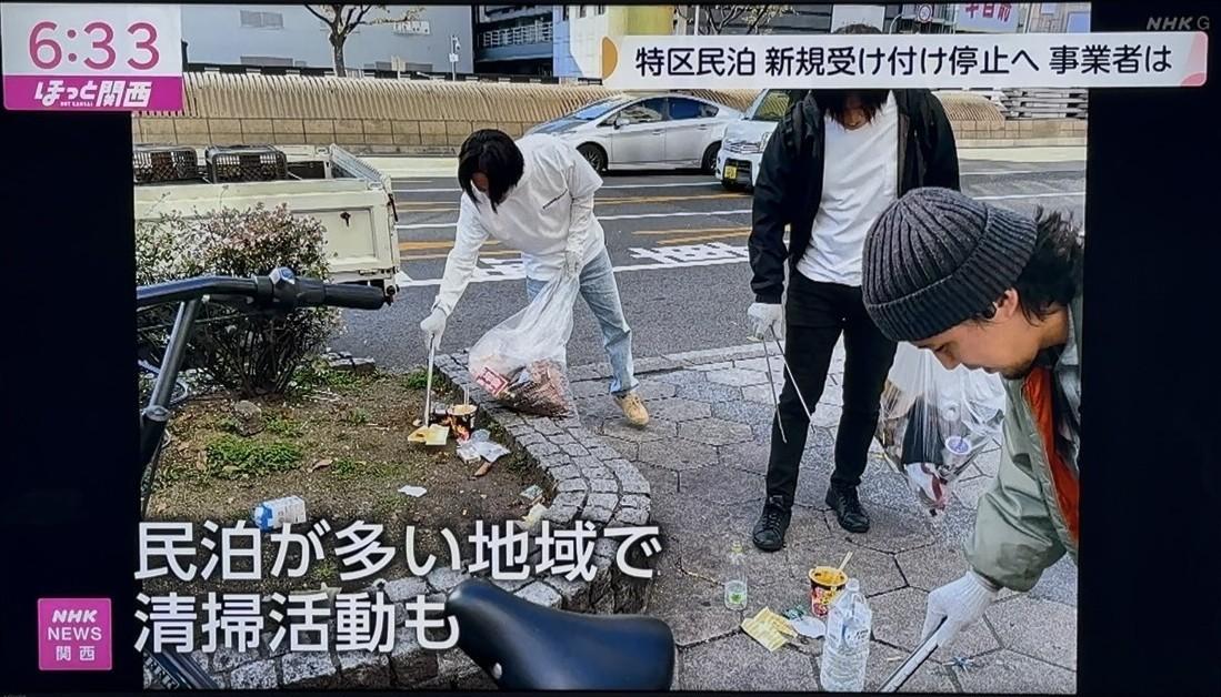 定期的に民泊・簡易宿所業が多いエリアでのごみ拾いを開催しております。