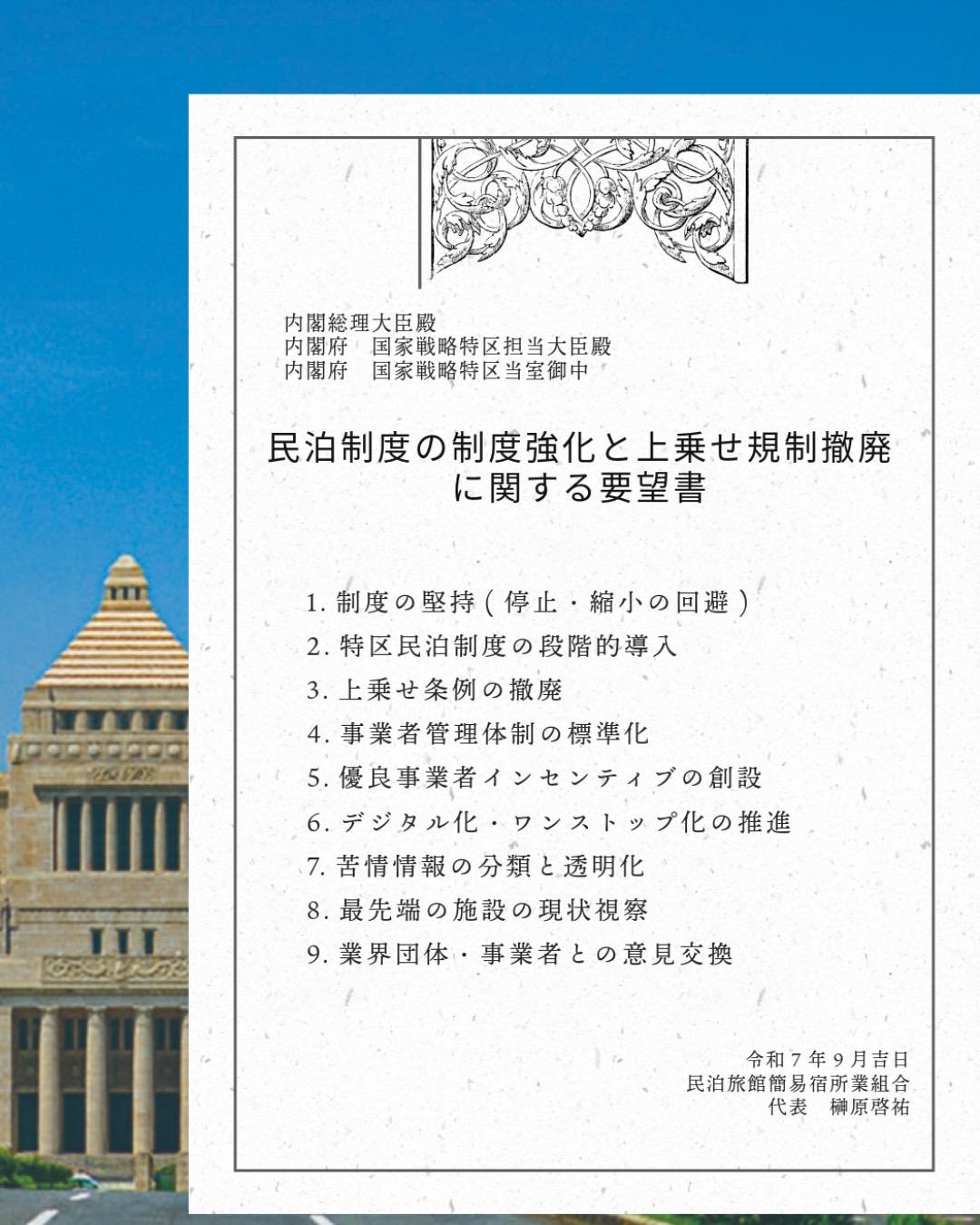 民泊旅館簡易宿所業組合は、2025年1月に発足した、民泊・旅館・簡易宿所業に携わる事業者のための業界団体です。